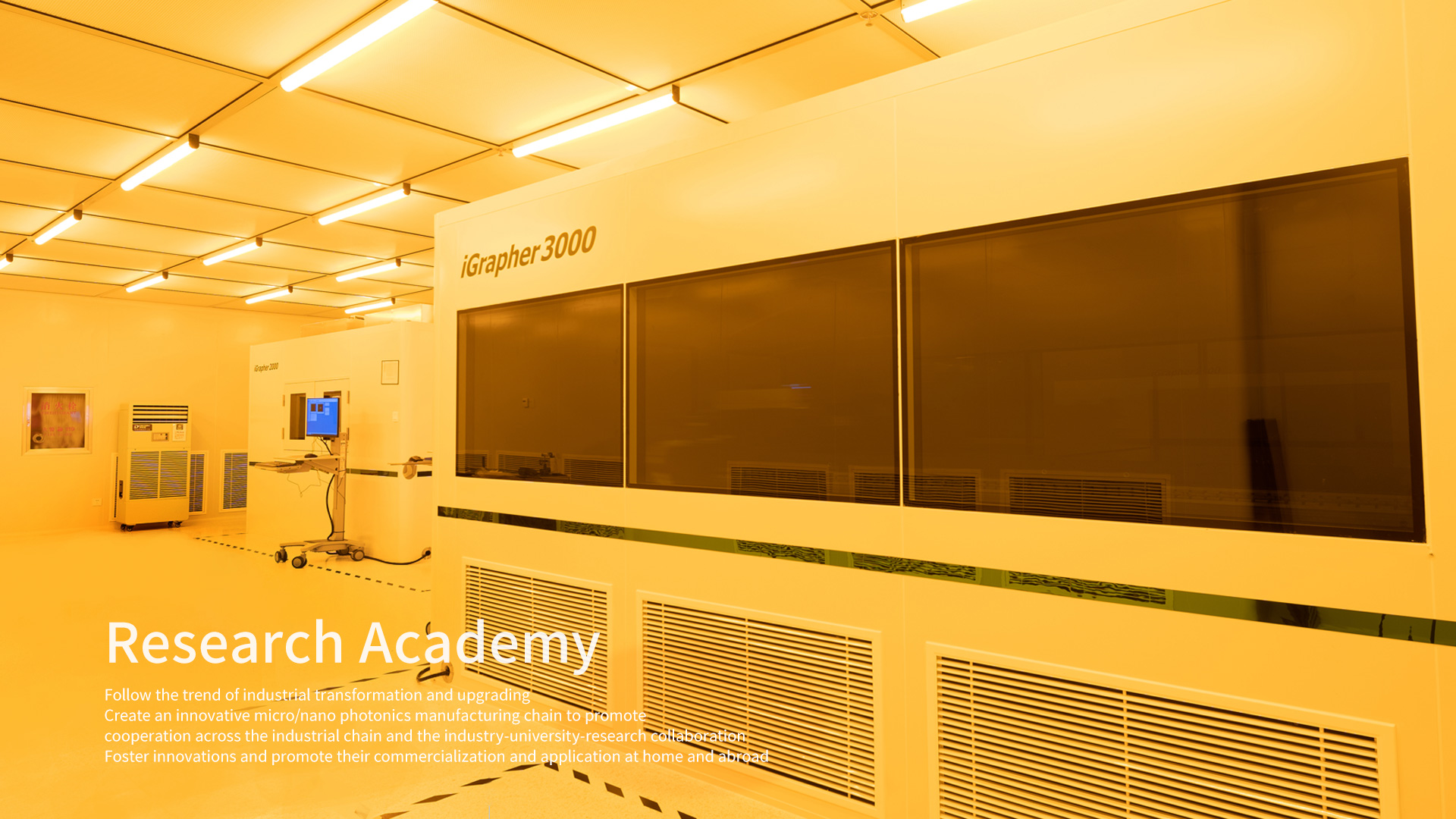 Our company has mainly tackled the key technical challenges in critical micro/nano equipment, carried out the R&D and application of "micro/nano manufacturing equipment and instruments", "micro/nano interface engineering and devices", "flexible micro/nano imprinting", and "functional optoelectronic materials and devices", established an innovative platform for micro/nano flexible manufacturing that is "modular, knowledge-intensive, upgradeable and quickly configurable", and aligned our technological landscape and foundation with that of developed countries.We persistently promote cooperation and innovation in the industrial chain in multiple directions, and have formed significant applications with industrial impact.In the interdisciplinary fields of nano-optics, smart manufacturing, and new materials, we have developed or will create a series of major target products.